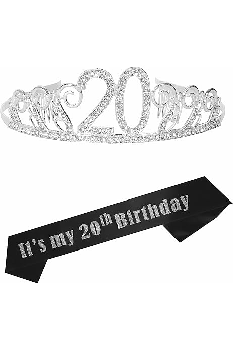 Amazon Com 20th Birthday Gift For Girl 20th Birthday Party Decoration Kit 20th Birthday Tiara And Sash Happy 20th Birthday Party Supplies 20th Birthday Sash And Tiara Birthday Crown Toys Games